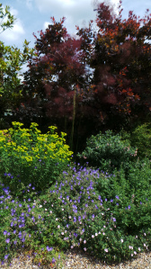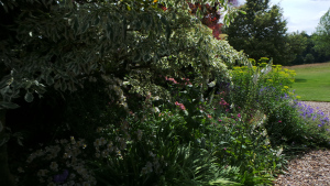 As promised for the third in my week’s posts celebrating my 500th post we go down to Hertfordshire to explore Tom Stuart-Smith’s garden designs at his own home and the home of his sister. The family home at Serge Hill is surrounded by mature planting. The new gardens designed by T S-S are within its grounds. When these gardens open they are very popular with thousands of visitors making an appearance. It looks very busy and taking photos is difficult as the gardens are only open for one day each year as part of the National Garden Scheme, so people find it in the famous Yellow Book. The friendly herd of Guernsey calves greeted every visitor. We wandered through the gardens around the house which had been there a long time but the influence of T S-S can be seen.