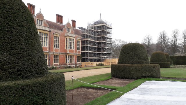 Here are a couple of pictures of the team at work…and you can also see the scaffolding on the Hall as roof repairs proceed.